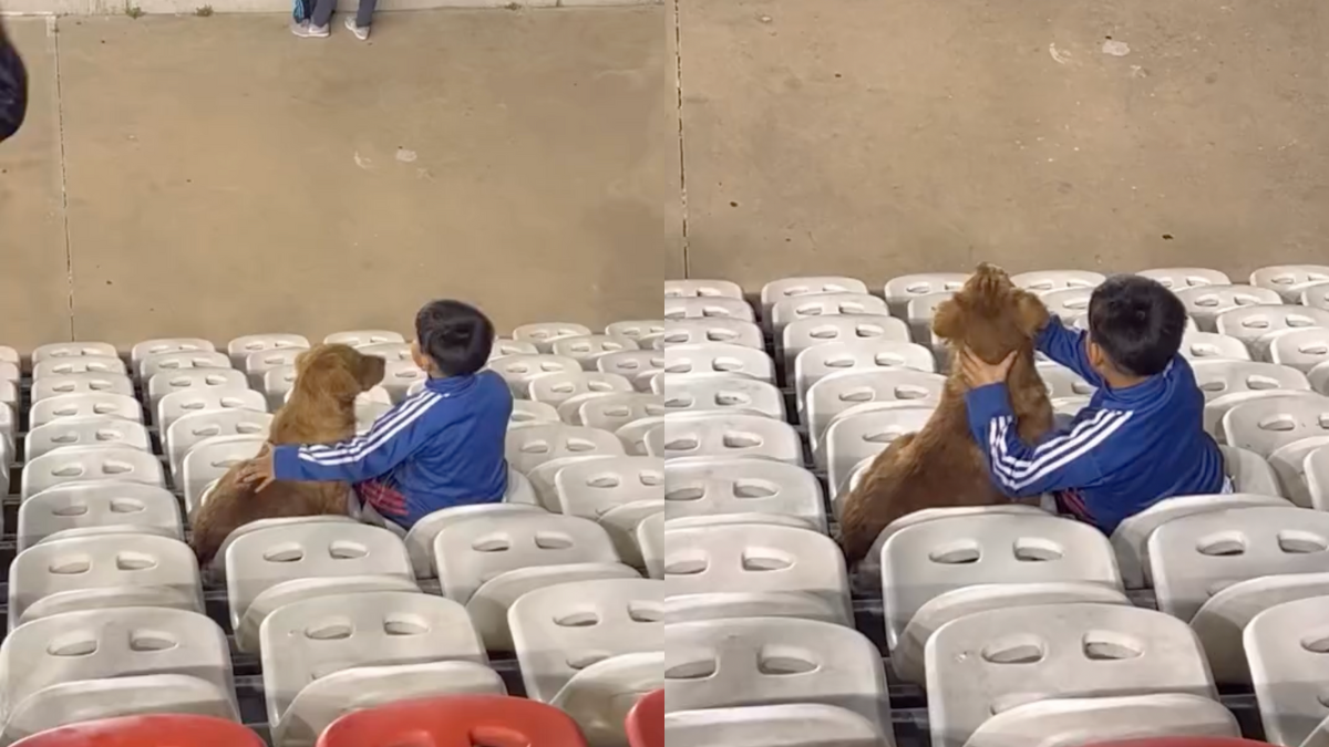 El momento fue captado por otro aficionado que se encontraba en la grada. En el video se observa cómo el pequeño, mientras canta con entusiasmo los cánticos de la hinchada, abraza a su mascota y le gira suavemente la cabeza para que también mire el encuentro.