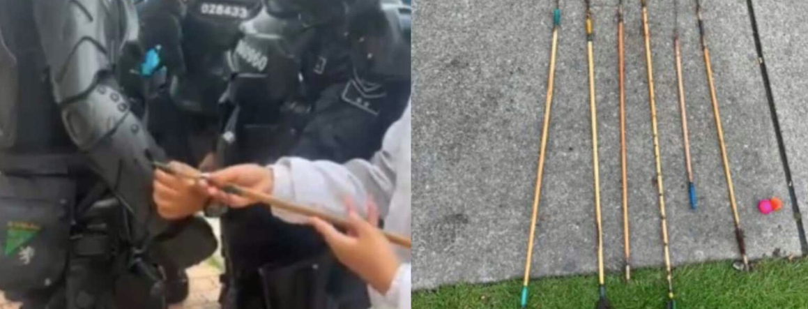 Un grupo del antiguo Esmad, ahora UNDMO (Unidad de Diálogo y Mantenimiento del Orden), fue atacado con flechas por indígenas este viernes 17 de octubre. Producto de los altercados, cuatro policías resultaron heridos con estos objetos punzantes.
