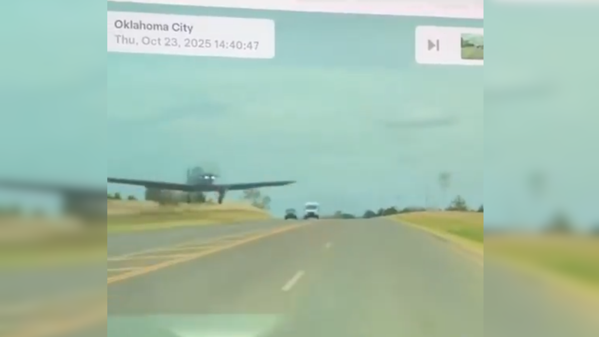 Según reportes del medio local KOCO News 5, el avión participaba en un entrenamiento rutinario tras despegar de la base aérea Will Rogers cuando presentó una falla en el motor poco antes de las 2 p. m. La situación obligó a los dos tripulantes a tomar una decisión desesperada: usar la carretera como pista de aterrizaje improvisada.