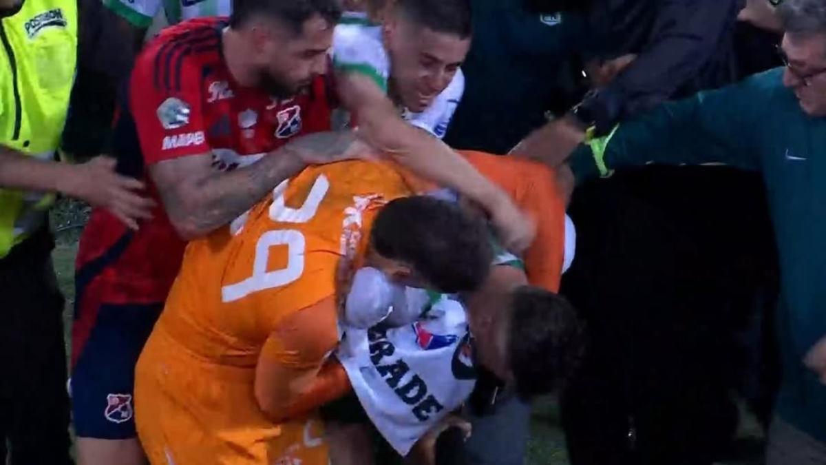 El clásico paisa terminó con victoria 2-1 para Atlético Nacional, pero también con un vergonzoso episodio. Cuando los jugadores se dirigían a los camerinos, Mateus Uribe y Washington Aguerre protagonizaron un fuerte altercado que desató una pelea generalizada entre futbolistas de Nacional y Medellín.