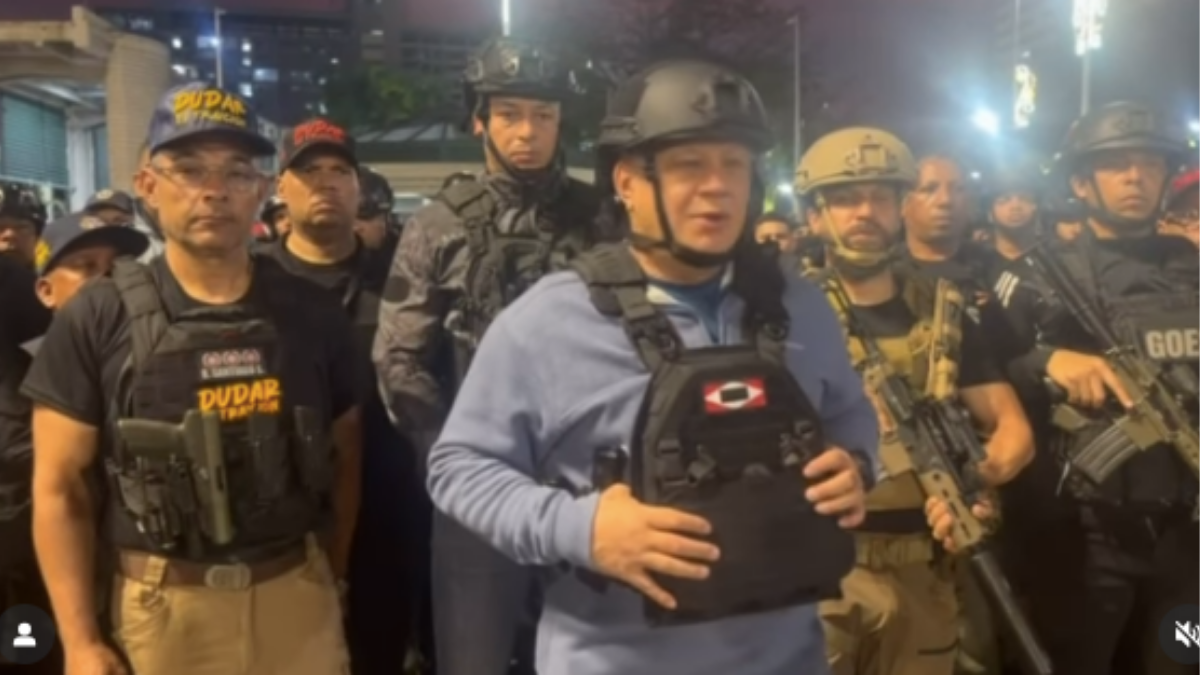 Vestido con casco y chaleco antibalas, Cabello, acompañado por militares también uniformados y armados, hizo un llamado a mantener la calma a sus compañeros y al pueblo venezolano pese a las explosiones reportadas desde las 2 de la madrugada.