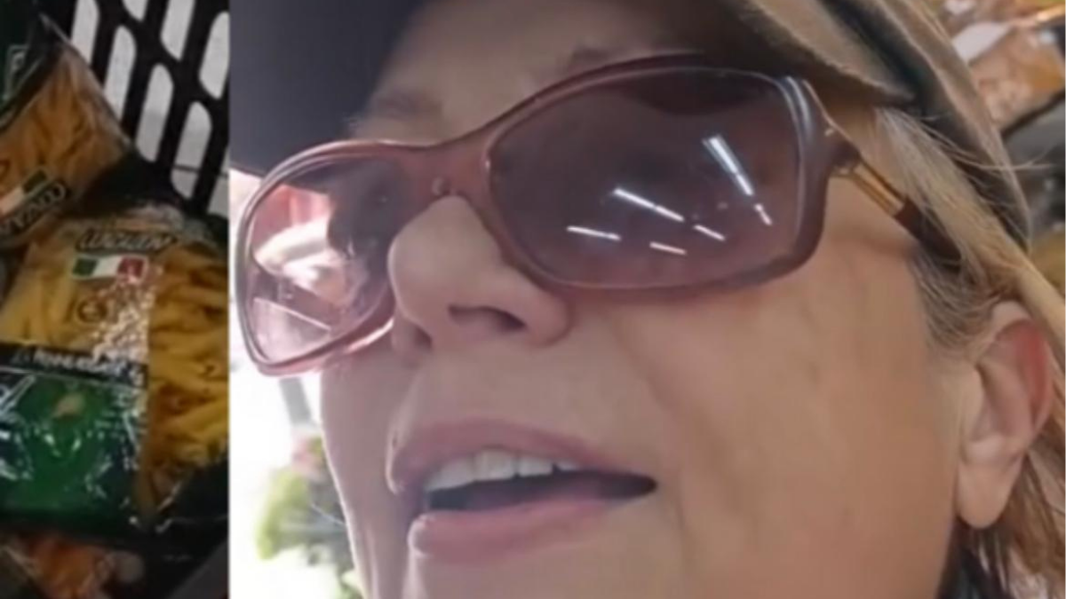 En otro momento del video aparece la señora llevando varios paquetes de pasta abiertos. Y la persona que le reclama le dice: “Debería grabar esto que dañó, señora”.