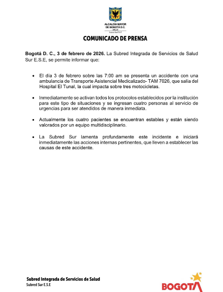 “Lo que se escuchó es que la ambulancia se estrelló contra el poste después de haber salido del hospital. Cuando salió, iban personas en dos motos y los atropelló. Eso fue que se quedó sin frenos”, relató una persona que estaba en el centro médico a Blu Radio.