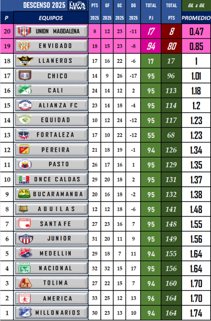 Descenso Liga BetPlay 2025-I
