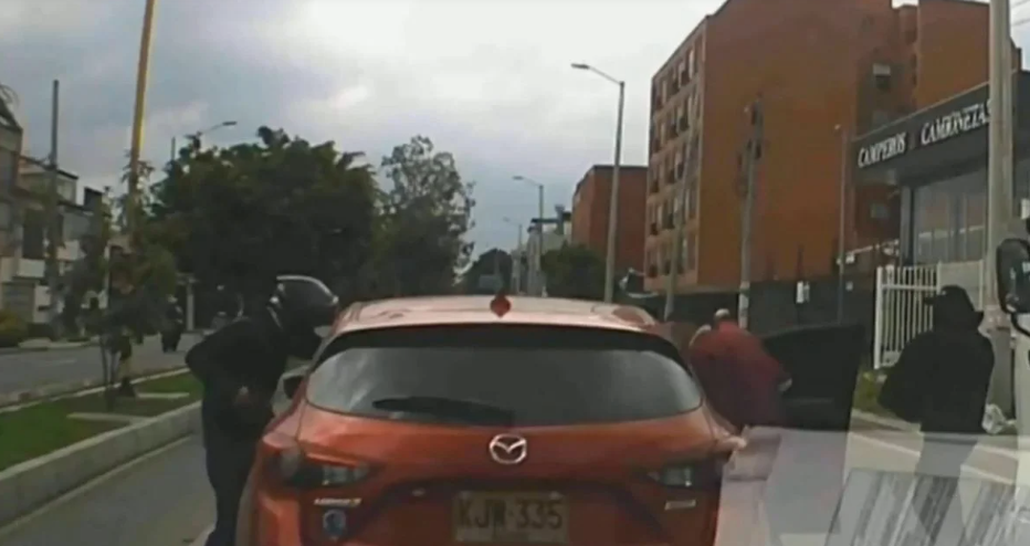 De acuerdo con el video, se observa cómo los ocupantes de un carro color naranja que transita por la calle 116 con 71B, zona norte de Bogotá, son abordados, de forma violenta, por varios sujetos; dos de ellos portaban, según se observa en el material audiovisual, armas de fuego.