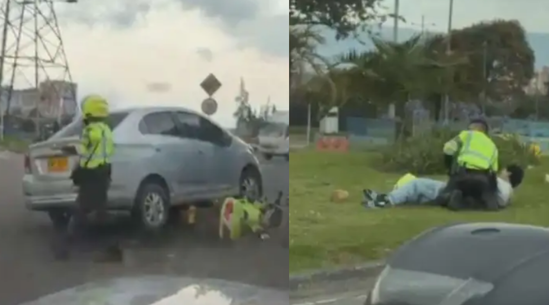 Un aparatoso accidente que involucró a un uniformado perteneciente a la Policía de Tránsito y a un conductor de un vehículo particular, quedó registrado en video. El incidente que ocurrió en cercanías al terminal de transporte de Bogotá tuvo como resultado la aprehensión del sujeto, quien ahora enfrenta cargos por agresión a servidor público y daño en bien ajeno.