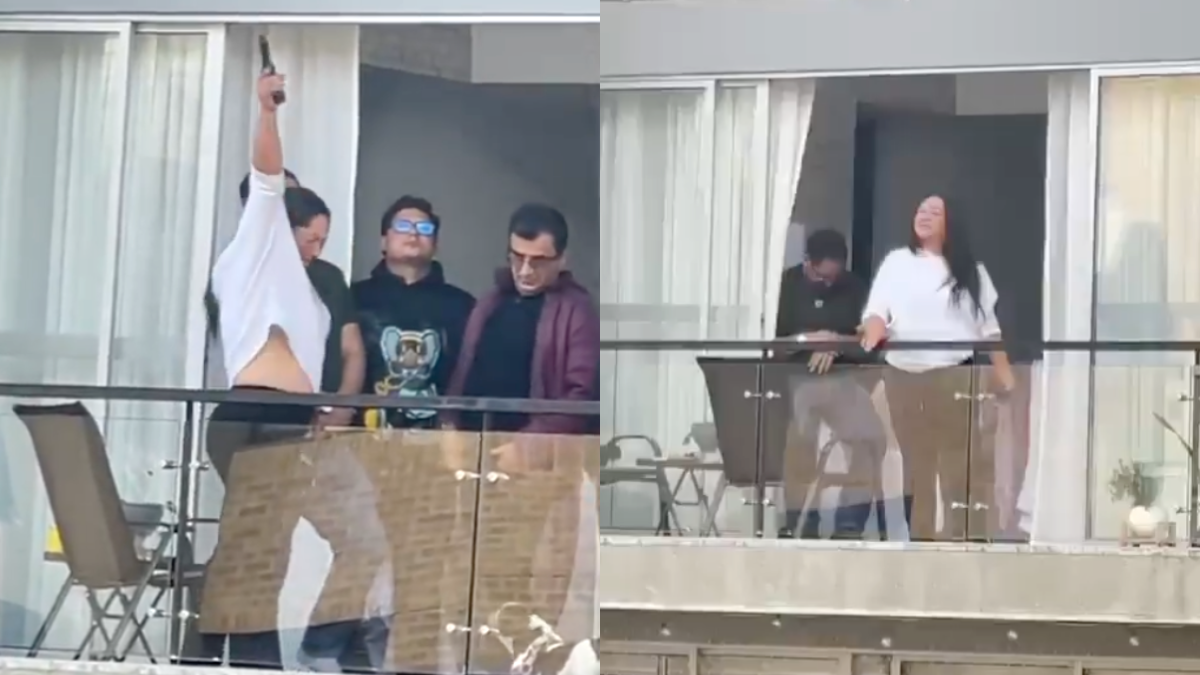 Durante el fin de semana, videos difundidos en redes sociales mostraron a una mujer disparando al aire desde el balcón de un apartamento en el sector Colina, localidad de Suba, al norte de Bogotá.Las imágenes, grabadas por vecinos desde edificios cercanos, revelan cómo la mujer sostiene un arma y la acciona apuntando al cielo, en medio de una reunión con música y gritos. En un momento, lanza una grosería, levanta el brazo y realiza varios disparos. Posteriormente, un hombre le arrebata el arma y la conduce al interior del apartamento.
